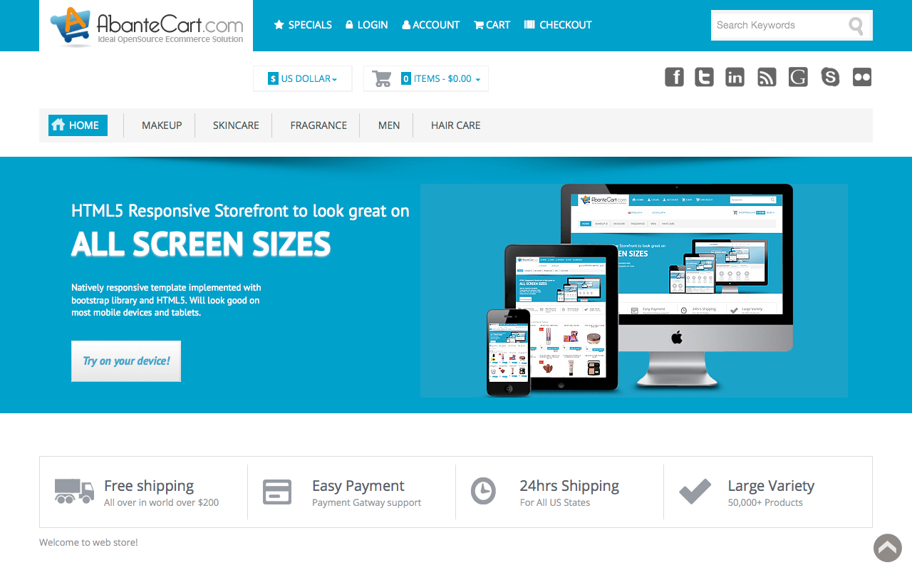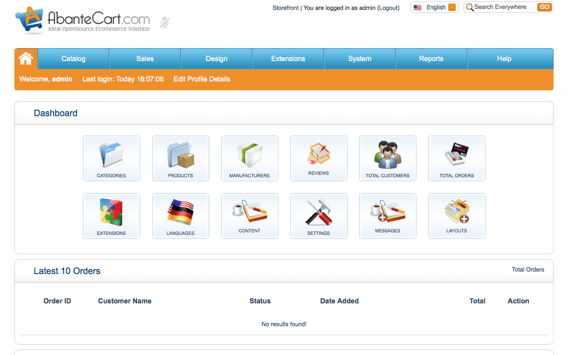- Expandable shopping cart application with fast growing number of extensions. Easy extension installation and management with one step installation. This allows to add virtually any feature or service to AbanteCart in the future, that this is very important in current dynamically changing technology environment.