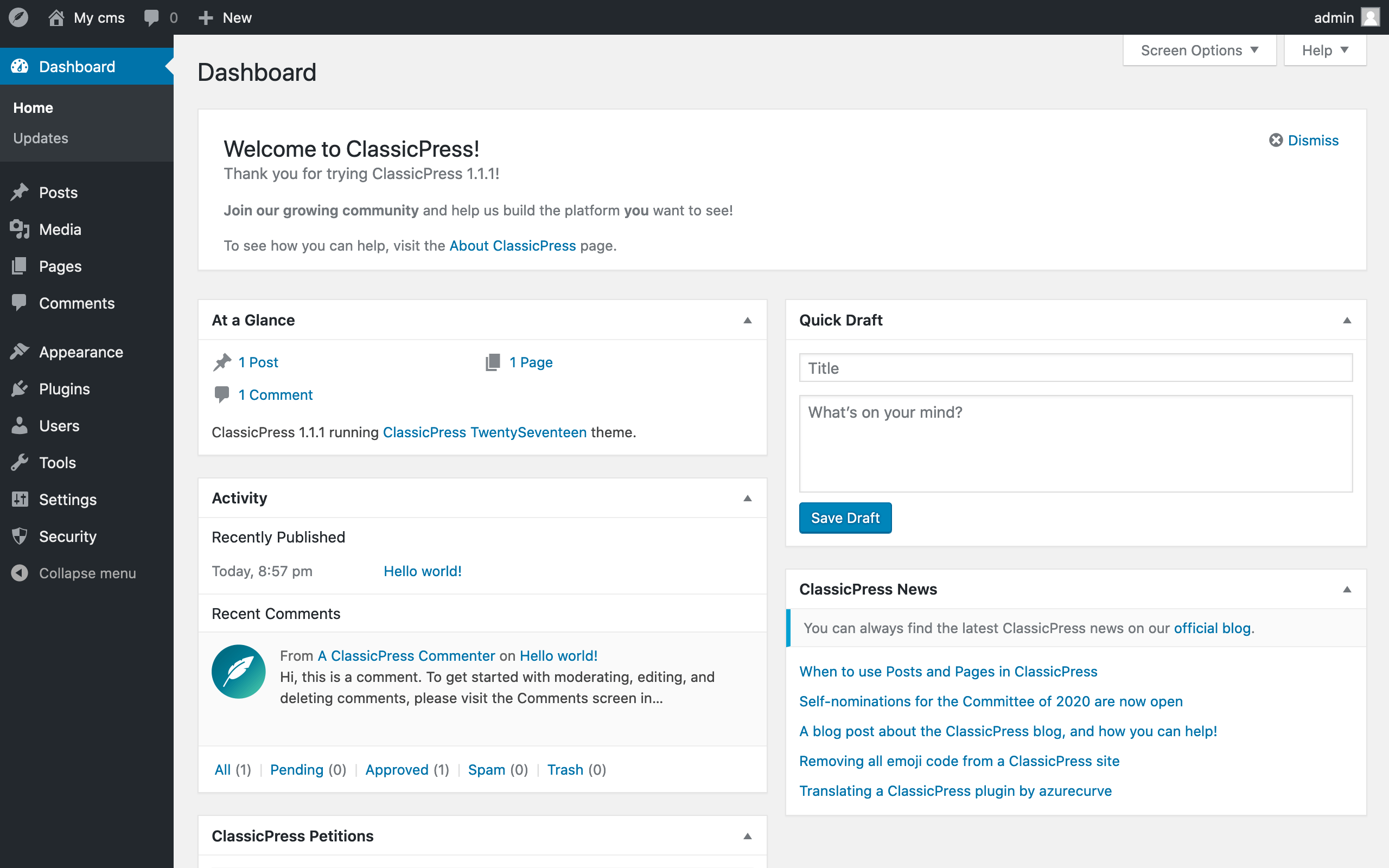 - Improved Security - Concerned about security? ClassicPress has a “security-first” approach. No matter how shiny or exciting a new feature is, if it’s not secure, it won’t be added to the platform.