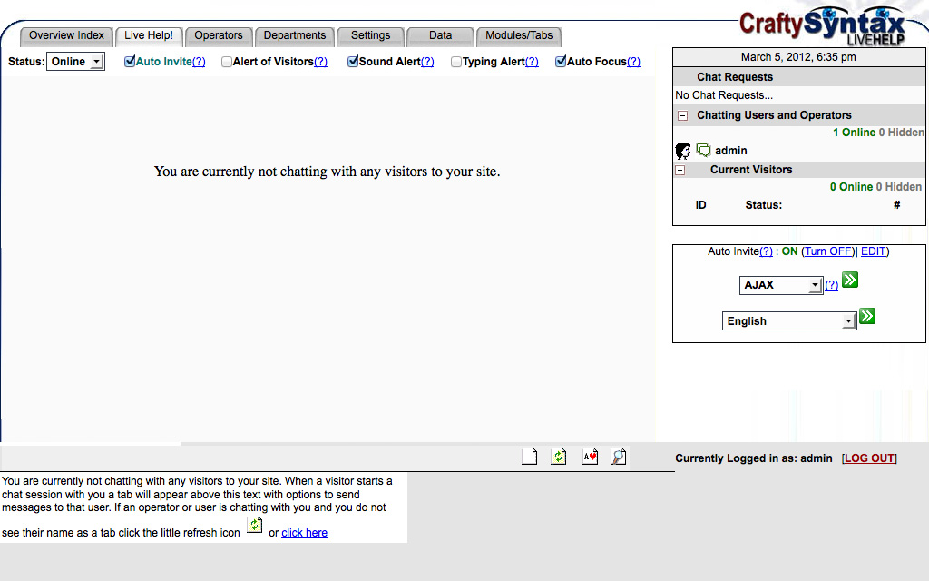 Features include auto-invite, referer tracking, page tracking, chat notification, user is typing message, multiple chat sessions, sound alert, leave a message if offline, push urls, quick responses, and multiple operators.