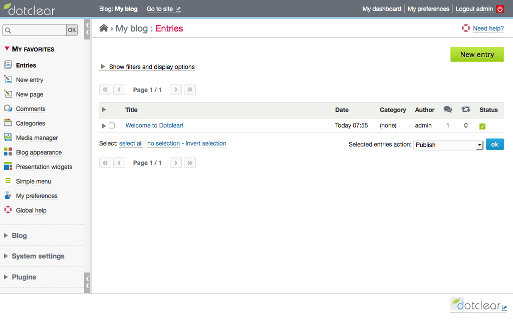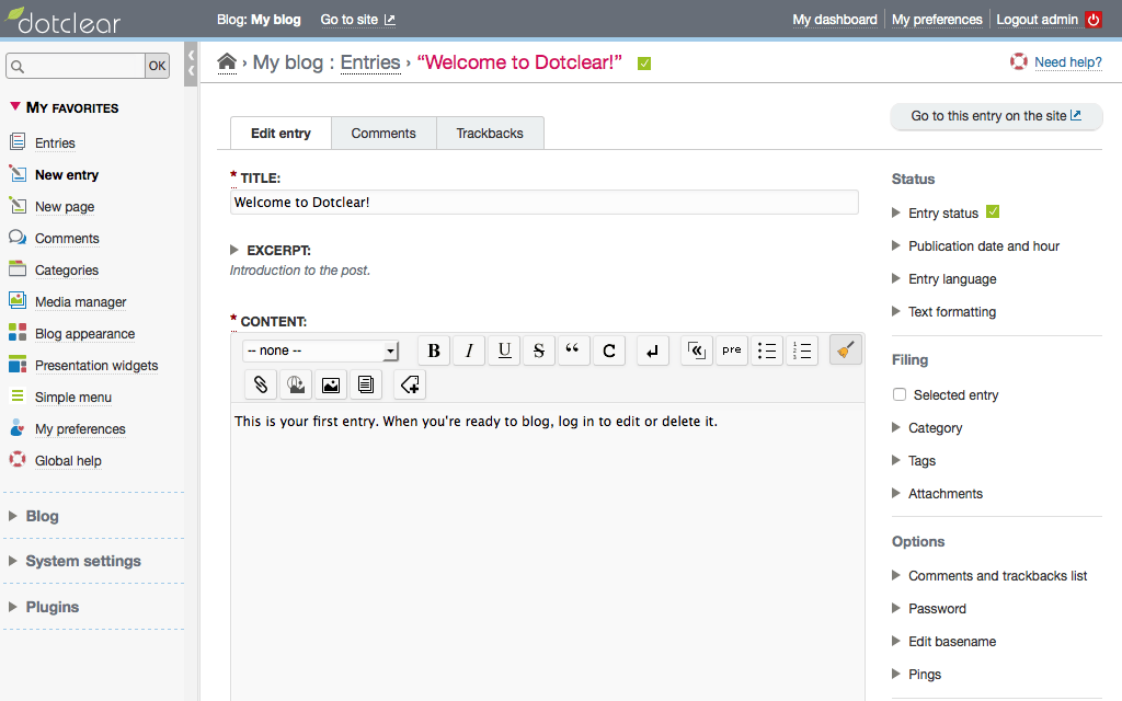 Dotclear project's purpose is to provide a user-friendly tool allowing anyone to publish on the web, regardless of their technical skills.