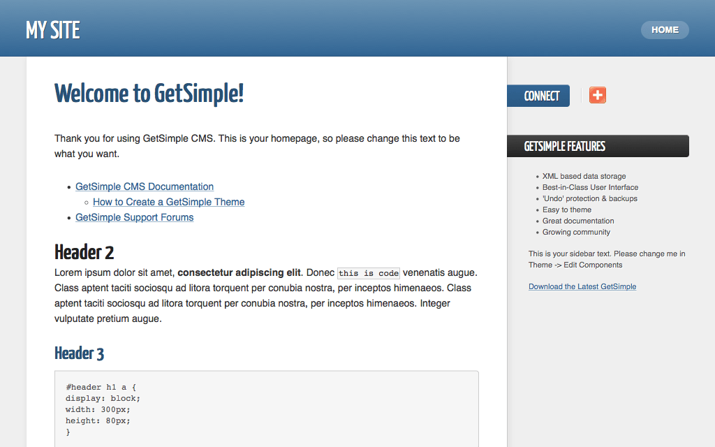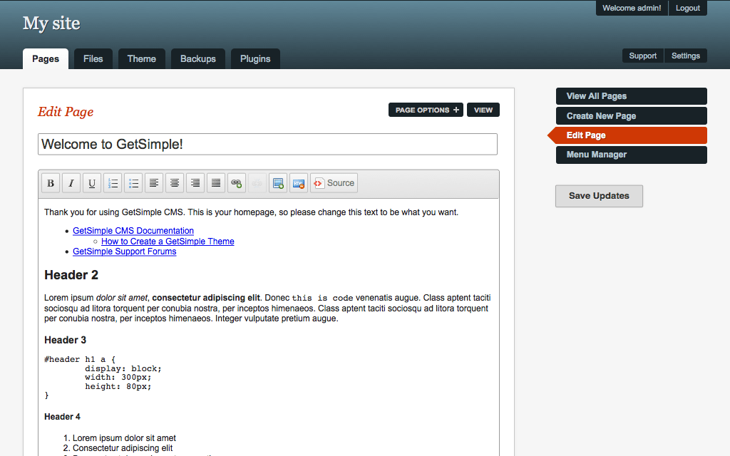 - Designed For the Small-Site Market: This is one of the reasons GetSimple uses XML rather than a robust database such as mySQL. For most small businesses, their only real need is to be able to easily update their site without the need of a ton of extraneous rarely used features. GetSimple's goal is to manage small websites efficiently and effectively