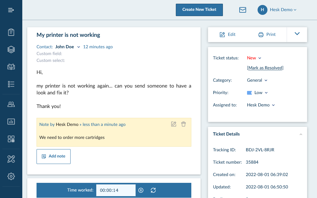 - Dozens of customization options and settings, custom fields, custom statuses, canned responses, ticket templates, spam prevention, and multiple languages are available – all free of charge!