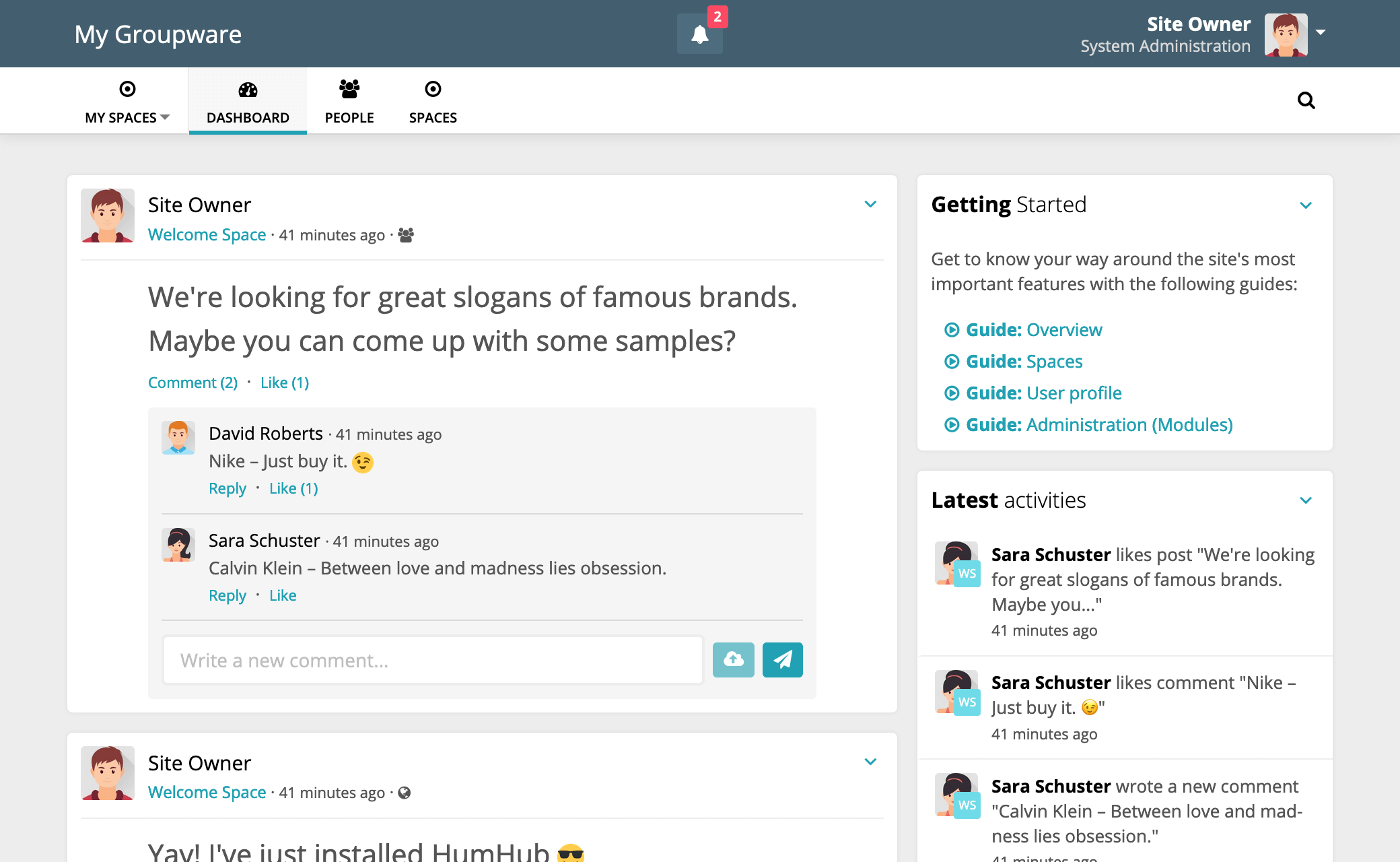 - FLEXIBLE: With a powerful module system you can extend HumHub by using third party tools, writing your own or connect existing software.