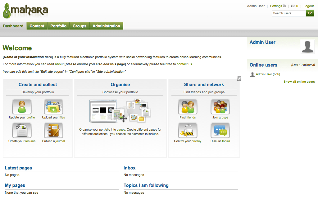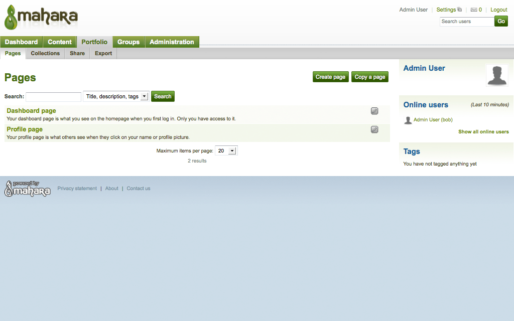 What makes Mahara different from other ePortfolio systems is that you control which items and what information (Artefacts) within your portfolio other users see. In order to facilitate this access control, all Artefacts you wish to show to other users need to be bundled up and placed into one area. Within Mahara this compilation of selected Artefacts is called a View. You can have as many Views as you like, each with a different collection of Artefacts, and intended purpose and audience. Your audience, or the people you wish to give access to your View, can be added as individuals or as a member of a Group or Community.