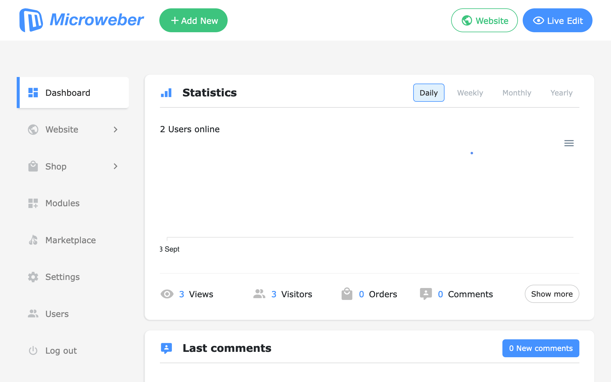 - E-commerce features: A full e-commerce solution for online business, create your online store with Microweber.