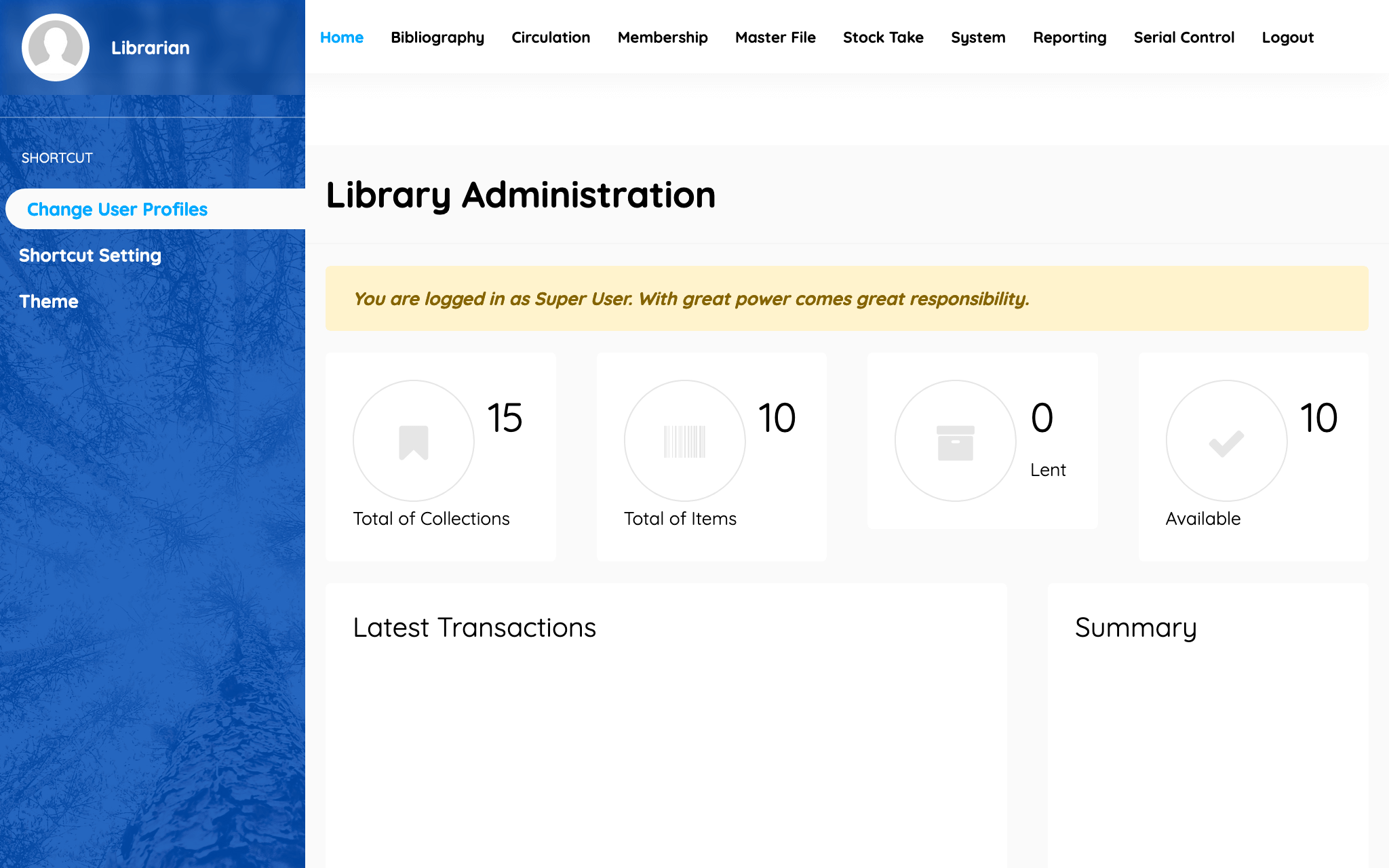 - Master Files management to manages document referential data such as GMD, Collection Types, Publishers, Authors, Locations, Authors and Suppliers