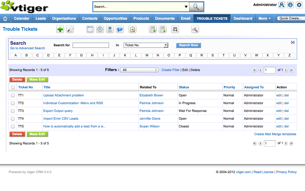 - Enterprise quality customer support & service require enterprise quality tools. vtiger CRM provides ticket management systems, knowledge management systems, customer self service portals, reports, support statistics and much more to enable your organization's support team to meet the needs of even the most demanding customers.