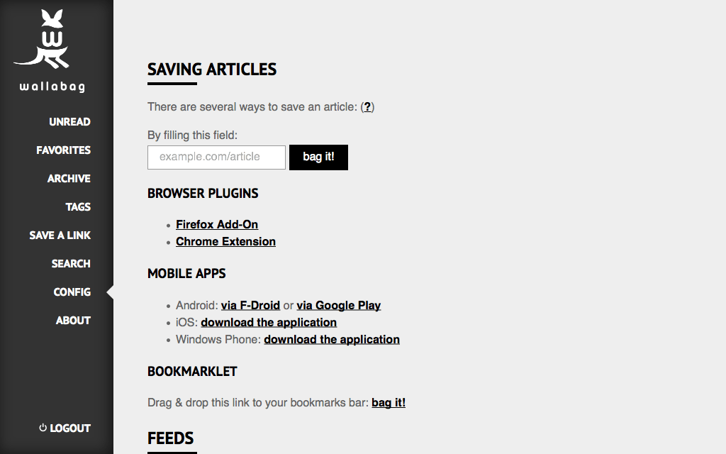 - You're not the only one at home to use wallabag? that’s fine, wallabag is multi-user