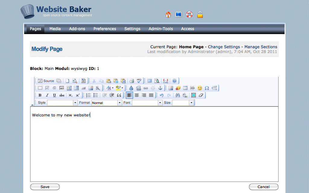 Create new templates within minutes - powered by XHTML, HTML, CSS and jQuery. With WebsiteBaker it's quite natural your site is W3C-valid, SEO-friendly and accessible - there are no limitations at all. Use droplets - the new and revolutionary way of inserting PHP code - everywhere you want. In addition to that, WebsiteBaker and the community are offering lots of extensions: Just download, install with two clicks and use them. That is not enough? You want more? No problem, build your own modules! The WebsiteBaker API gives many opportunities you can rely on.