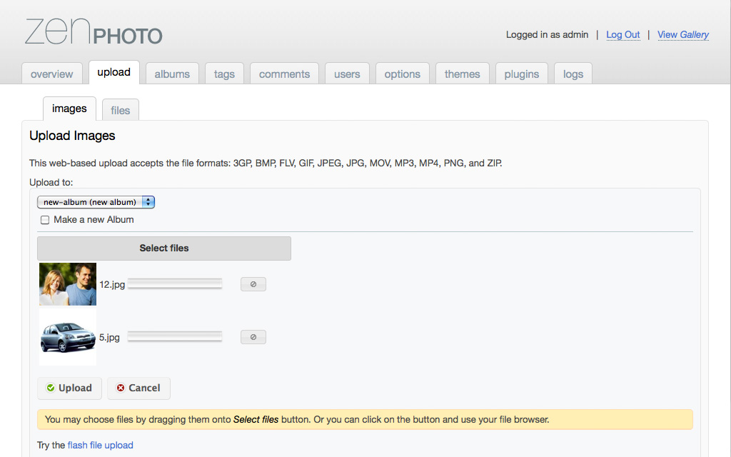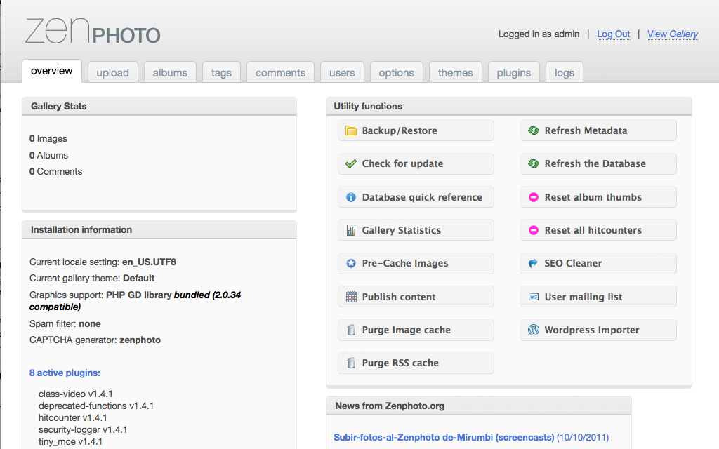 Zenphoto features support for images, video and audio formats, and the Zenpage CMS plugin provides a fully integrated news section (blog) and custom pages to run entire websites.