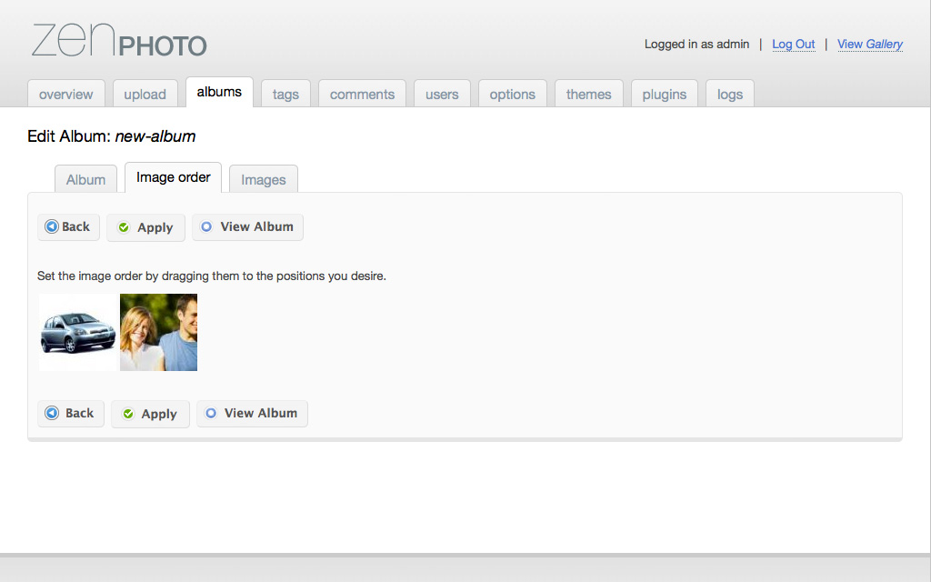 - Drag and Drop sorting, moving, copying, renaming of albums and images.